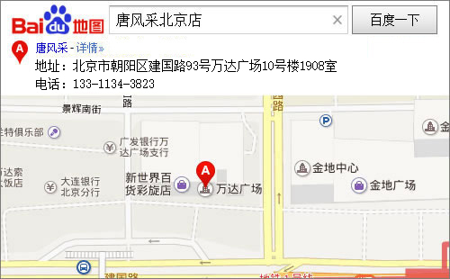 唐風采北京店座落于國貿東邊CBD集中點,東三環(huán)邊,北京電視臺北邊,大望橋西北角的萬達廣場,地鐵1號線大望路D口出,停車場萬達廣場東區(qū)停車場,萬達廣場10號樓1908室。
