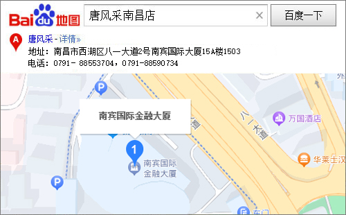 “唐風(fēng)采(南昌店)”喜遷新址,地處南昌核心地段南賓國(guó)際大廈,南賓國(guó)際大廈四面是通往城市四方的直通大道,這里也是南昌市民活動(dòng)的中心,交通便利,處繁華鬧市區(qū),風(fēng)景優(yōu)美,四周林立各大商業(yè)銀行,我們期待您的光臨。
