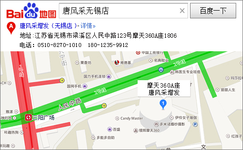 唐風采無錫店:位于無錫市中心,地處人民路和 中山路。大東方百貨,崇安寺步行街。無錫站打 車15分鐘左右,地鐵兩站路。